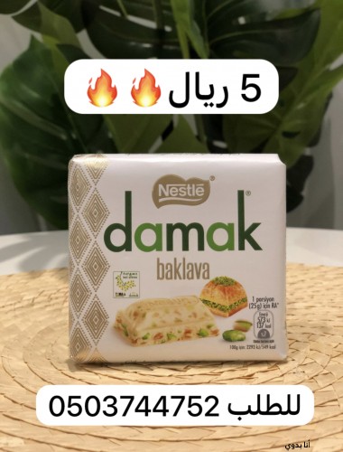 شوكولاته داماك التركية بالبقلاوة ادماااان من الاخر الان الحبة فقط ب 5.50 ريال ويوجد توصيل داخل مدينة جدة