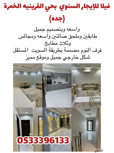 واسعه بمجالس كبيره وصالات واسعه جدا وثلاث مطابخ وخمس غرف نوم كل غرفه عبارة عن جناح مستقل مع غرفة غسيل وثلاث مطابخ